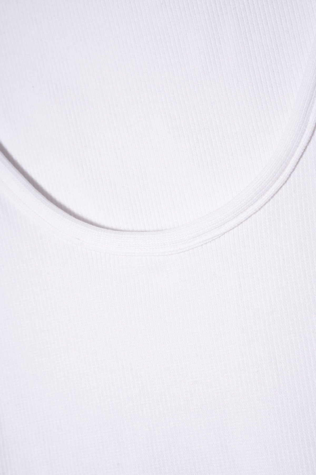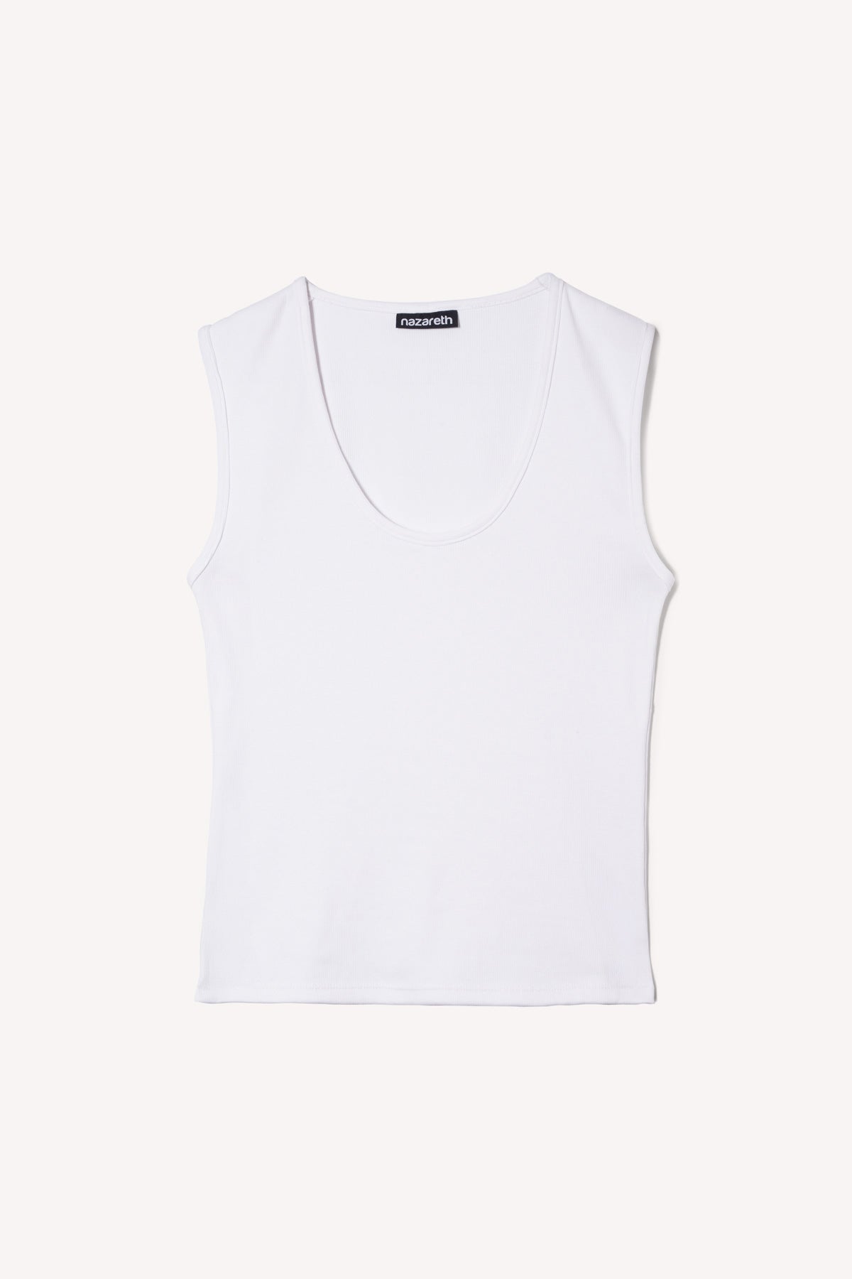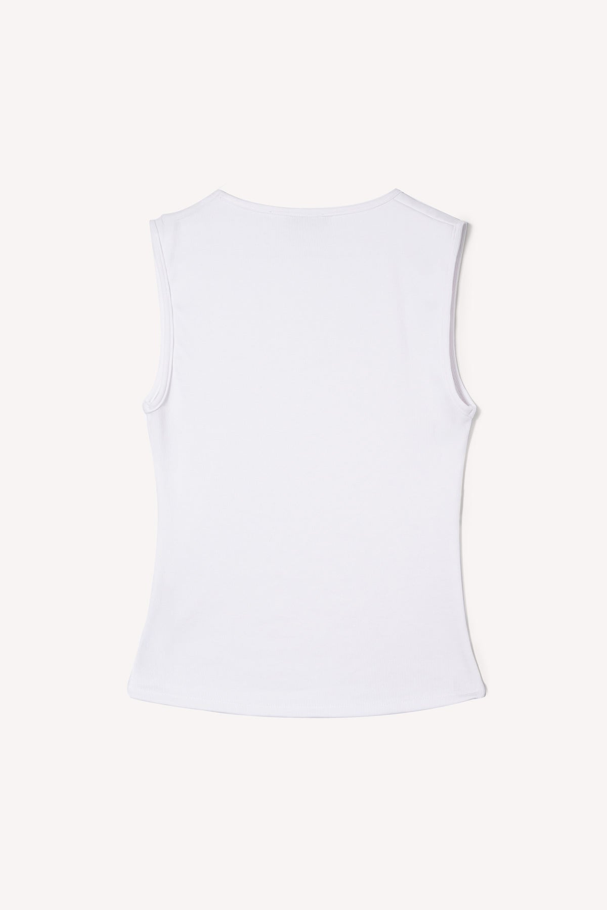 Regata com decote redondo em algodão sem mangas. Justa, mas de malha elástica.