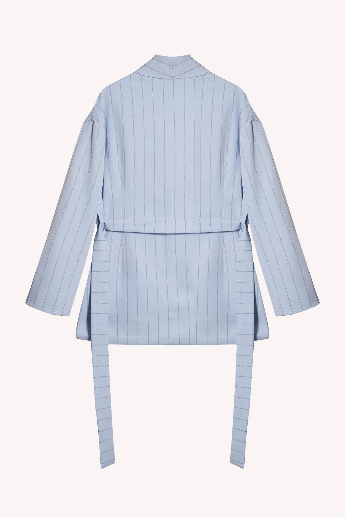 CASACO: Elegante e cintado sem forro, mas todo rematado a fita de viés, feito de desperdício de matéria prima de coleções passadas.