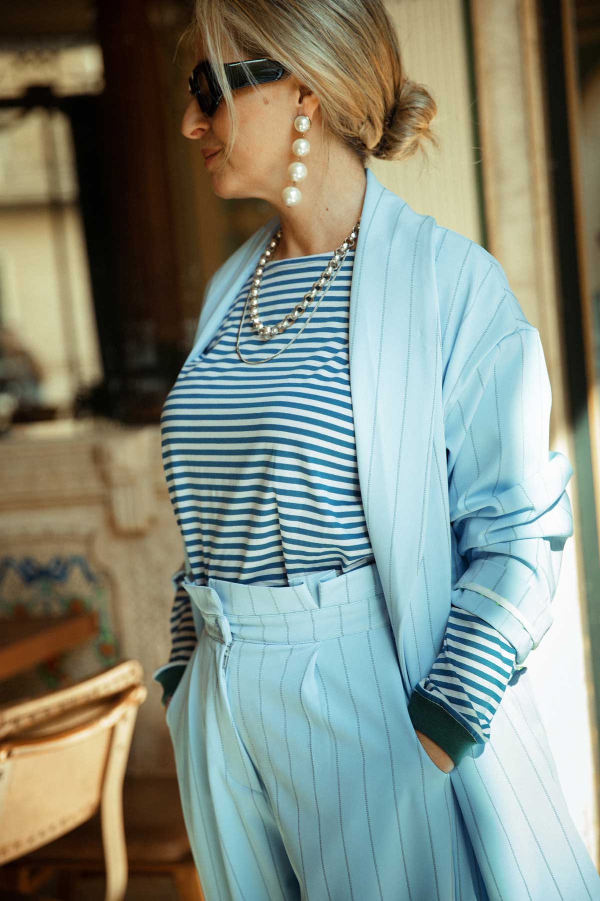 As Calças Hortênsia foram pensadas para oferecer um equilíbrio perfeito entre o clássico e o descontraído. Confecionadas em algodão orgânico azul bebé, têm um toque suave e um caimento leve que transmite frescura e serenidade.